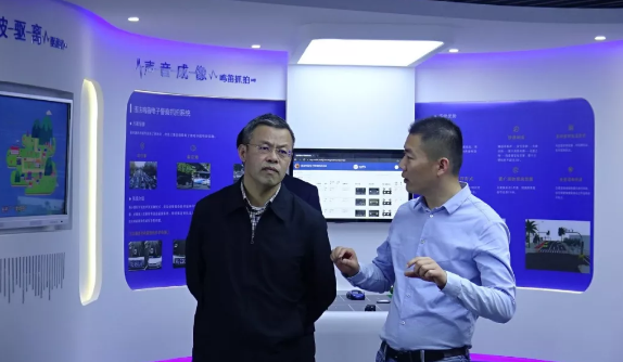 接著,來到違法鳴笛電子警察抓拍系統展示區,工作人員通過產品原理演示以及后臺數據反饋,讓鈕躍鳴副主席一行輕松理解違法鳴笛抓拍系統獨特的“聲源定位”和“聲音成像”技術。面對這一項對智慧交通發展以及城市文明建設工作有積極作用的技術成果轉化,鈕躍鳴副主席表達了對其今后部署的關注。